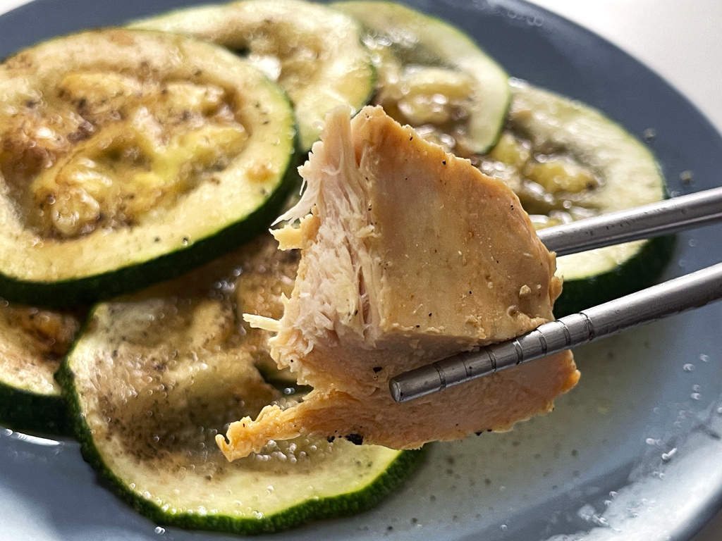 吃得意猶未盡,順道又做了即食雞胸肉與櫛瓜的美味結合,乾煎一下,健康又營養,無論是炒、煎、燉,都會帶來意想不到的驚喜。